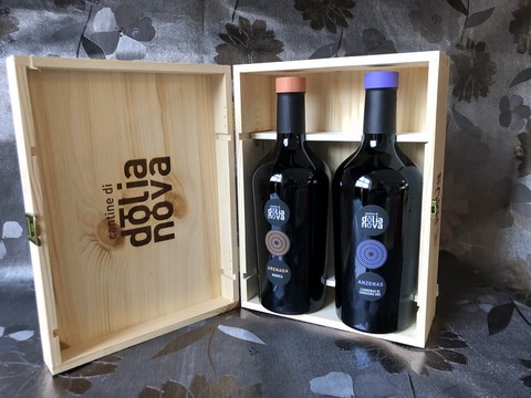 CONFEZIONE 2 BOTTIGLIE CON ASTUCCIO IN LEGNO VINO CANTINA DOLIANOVA